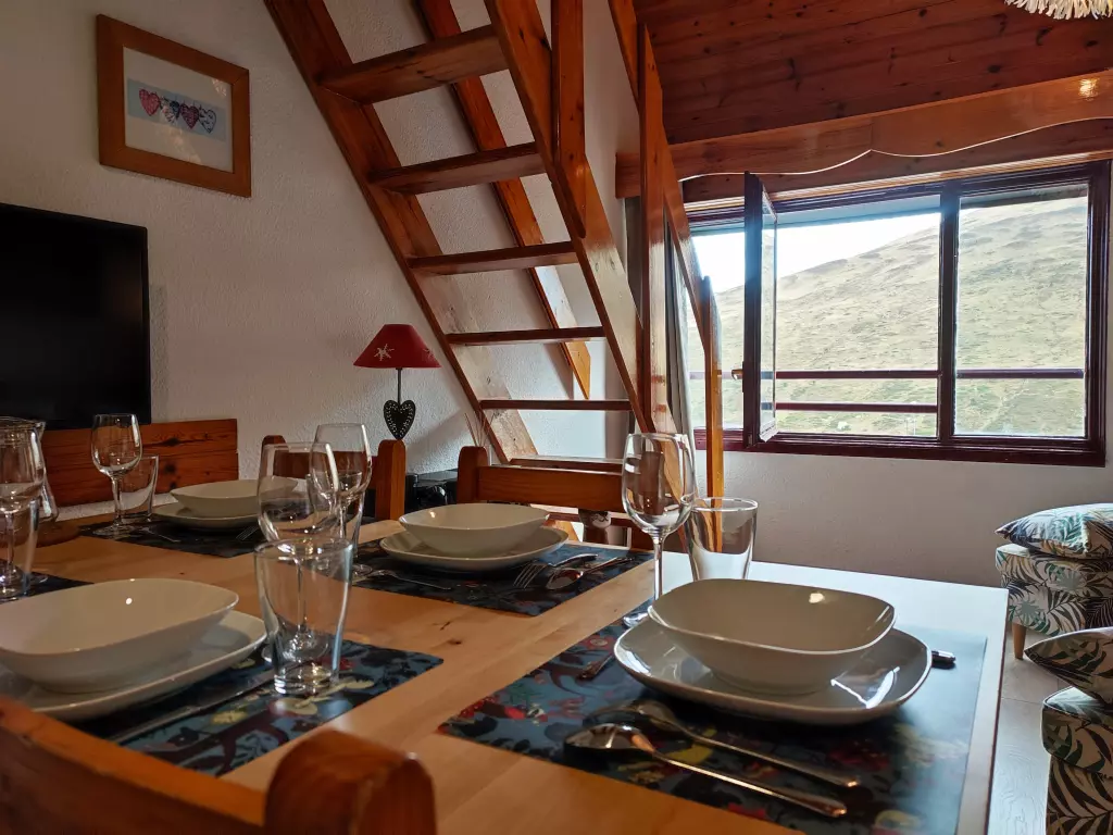 Unclosed two-bedroom duplex with mountain view. Very well equipped kitchen and mountain style in this apartment at the foot of the slopes which can accommodate up to 6 people. HUT2-005947